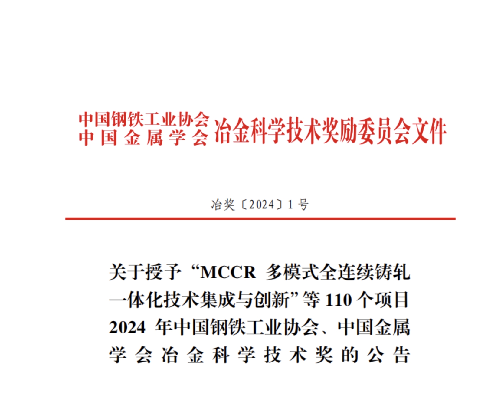 近日,中國鋼鐵工業(yè)協(xié)會、中國金屬學(xué)會冶金科學(xué)技術(shù)獎獎勵委員會發(fā)布2024年冶金科學(xué)技術(shù)獎公告,決定對110個項目授予2024 年冶金科學(xué)技術(shù)獎。