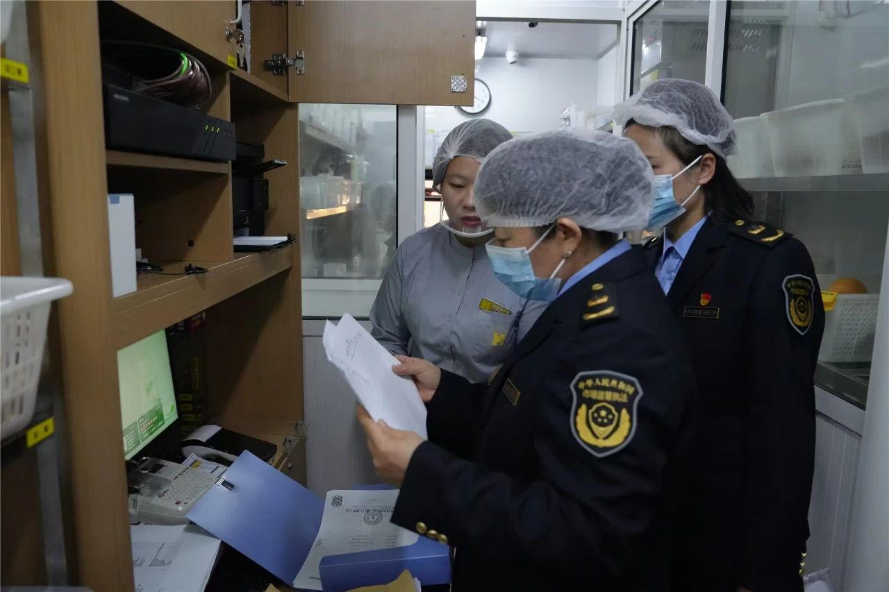 圖為市場(chǎng)監(jiān)管執(zhí)法人員開展“隨機(jī)查餐廳”行動(dòng)